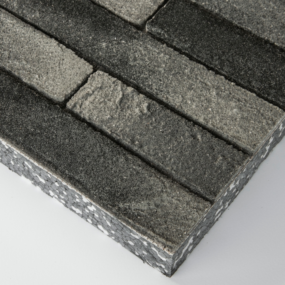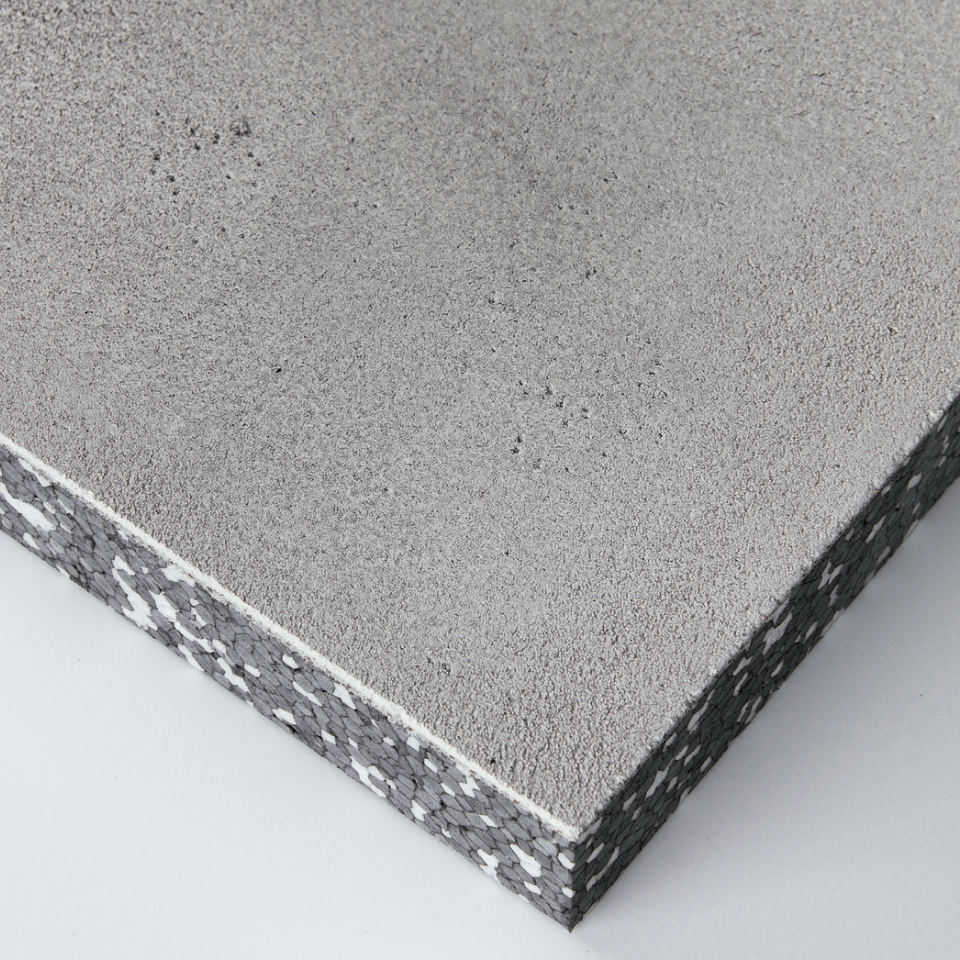 Een gevelafwerking die lijkt op beton, maar die op een veel dunnere en lichtere manier op de gevel kan worden aangebracht.