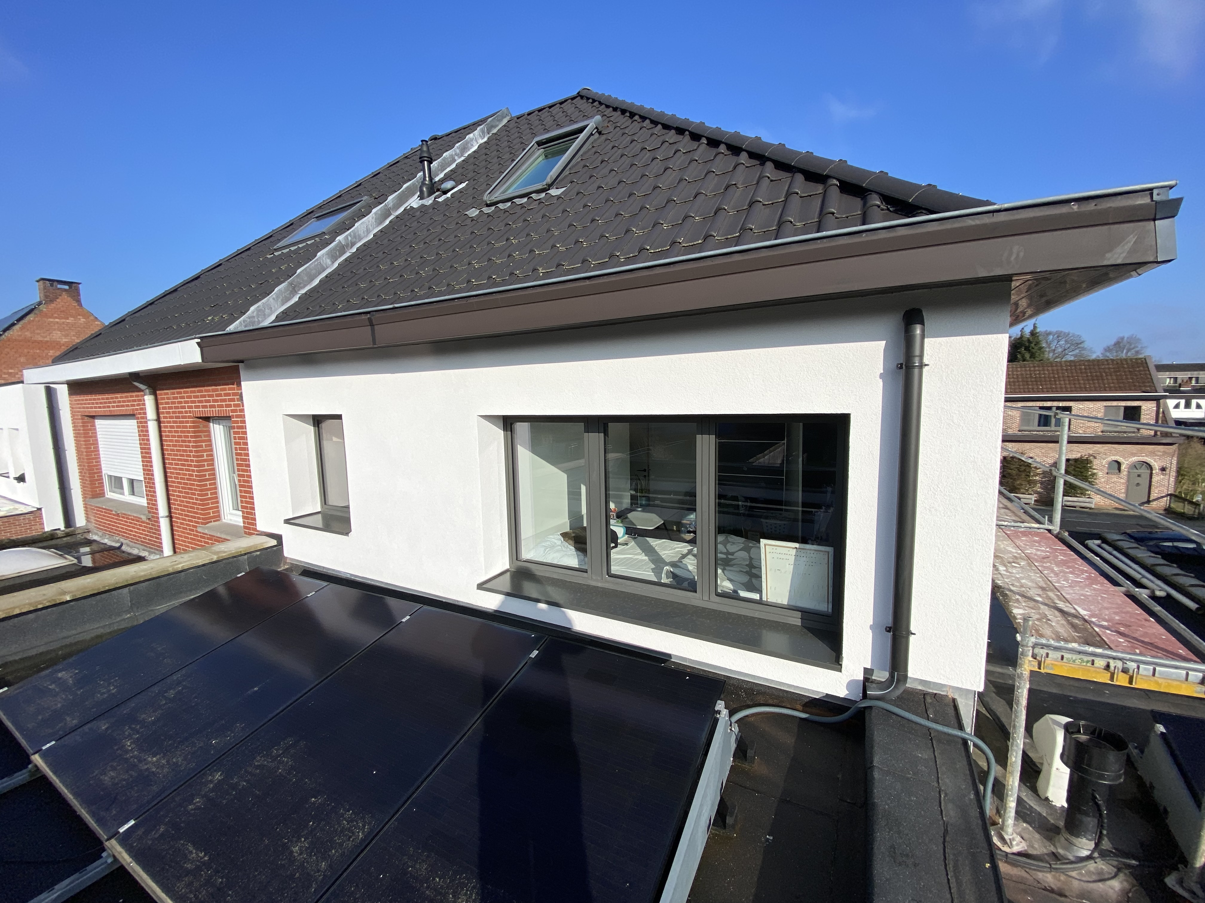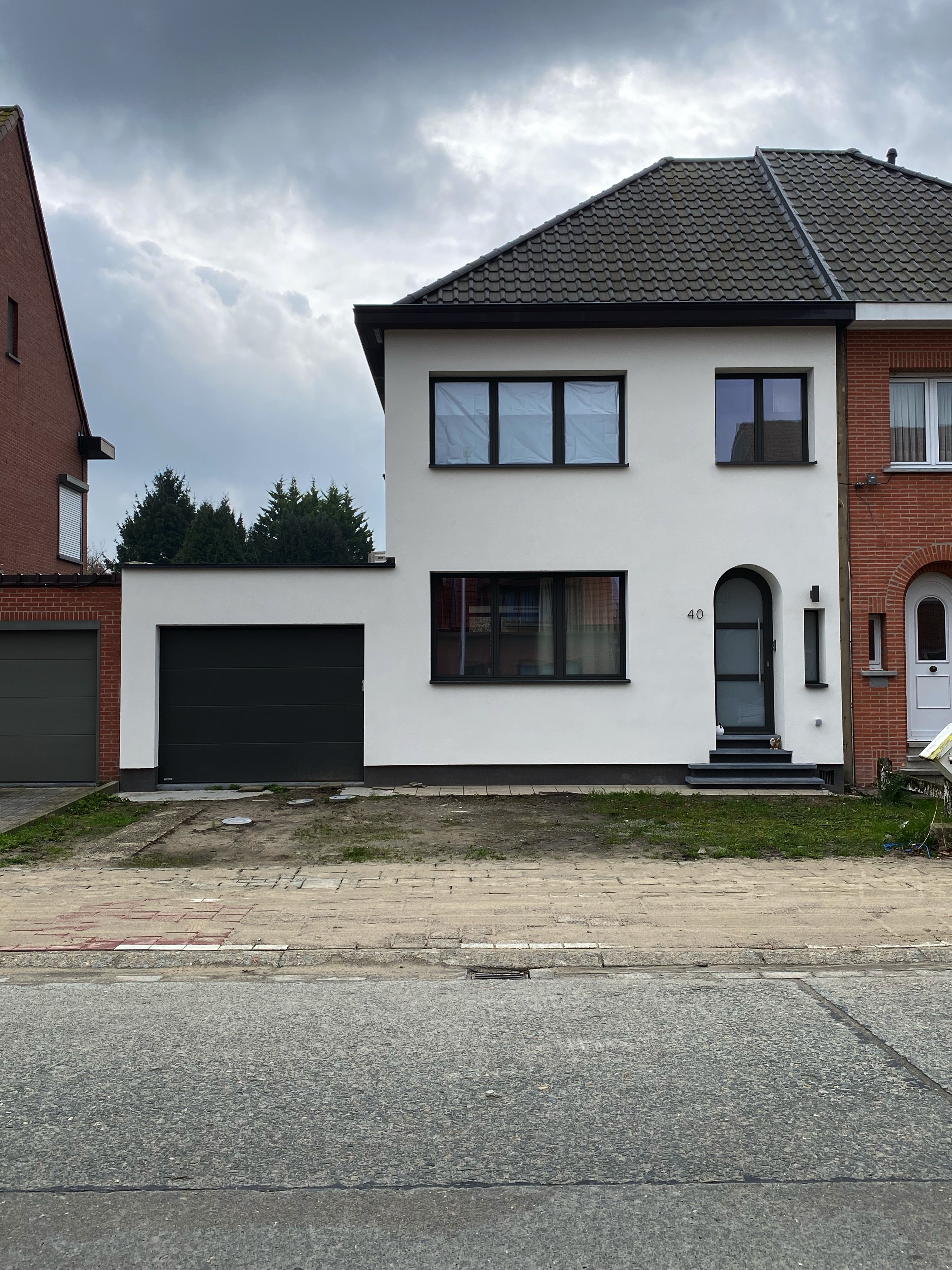 Voor de isolatie van deze halfopen bebouwing werd gekozen voor een isolatiedikte van 10 cm. Deze dikte geeft recht op een aanzienlijke premie. Na plaatsing van de isolatie en wapeningslaag werd de gevel afgewerkt met crepi in een warmwitte kleur.